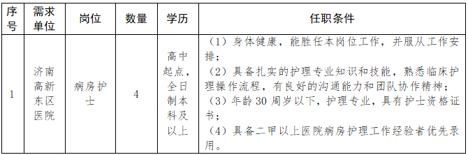 濟南高新東區(qū)醫(yī)院公開招聘勞務派遣制病房護士簡章